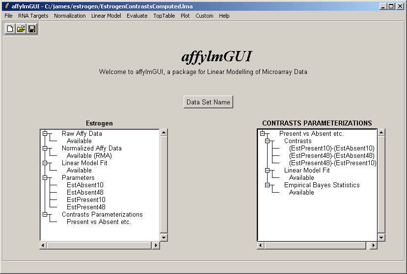 After the data has been loaded the left status window is updated in the main affylmGUI window.