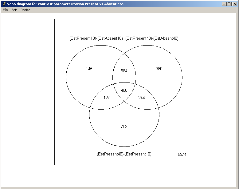 Here we will compare Estrogen Present with Estrogen Absent at the two different times and also make a time comparison for Estrogen Present. Note that if you want to simply compare Estrogen Present with Estrogen Absent, you will need to modify the Target column of the Targets file and begin a new analysis.