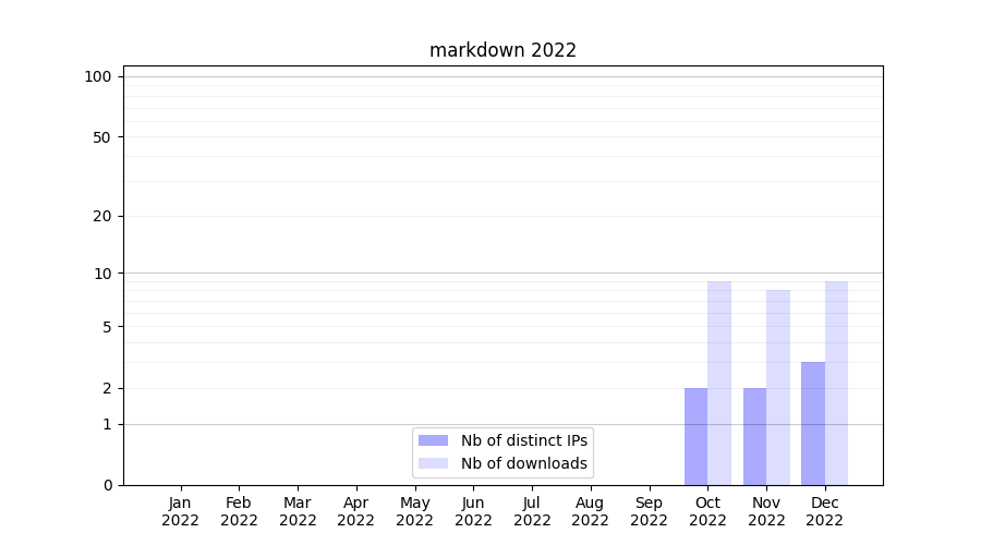 Number of downloads for workflow package markdown, year by year, from 2023 back to 2015 (years with no downloads are omitted):